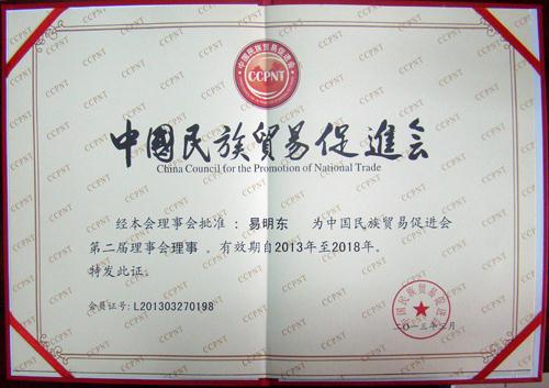 中國民族貿易促進(jìn)會(huì )理事證書(shū)