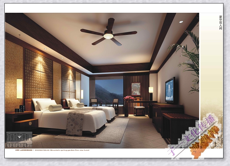 井岡山.中泰來(lái)國際大酒店是由深圳市中泰來(lái)投資控股股份有限公司,斥資3.6億元人民幣打造目前井岡山地區規模最大、檔次最高、配套最全的一家集旅游、休閑、度假、會(huì )議學(xué)習、商務(wù)活動(dòng)為一體的綜合性五星級度假酒店,由香港中泰來(lái)國際酒店管理集團經(jīng)營(yíng)管理。酒店坐落于中國革命搖籃,國家5A級 “井岡山景區”茨坪鎮井遂公路與主峰路交匯處,三面臨山,一面擁湖,毗鄰著(zhù)名景點(diǎn)五指峰、黃洋界,依山面水,環(huán)境優(yōu)美。酒店主體總建筑面積4.5萬(wàn)平方米,擁有各類(lèi)豪華客房380套,完善的設備、新穎的設計、個(gè)性化的服務(wù)讓您放松心情,感受自然。時(shí)尚的設計、嚴謹的管理、細膩的服務(wù)將讓您的商務(wù)、休閑、會(huì )務(wù)、美食、娛樂(lè )之旅得到最好詮釋?zhuān)?br />